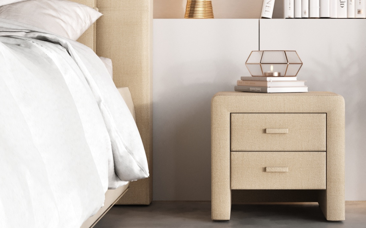 Gustowna i niewielka szafka tapicerowana 80683 z blatem do przechowywania oraz dwoma wygodnymi szufladami z dużymi uchwytami. Ten niewielki mebel może mieć spory potencjał w sypialni, bo do wyboru użytkownika jest co najmniej kilkaset tkanin i mnóstwo interesujących wersji kolorystycznych. Szafka ma kompaktowy rozmiar, dzięki czemu bez trudu zmieści się koło łóżka. Pod szufladami jest też niewielka przestrzeń, gdzie można na przykład schować kapcie. Elegancki i przemyślany mebel.