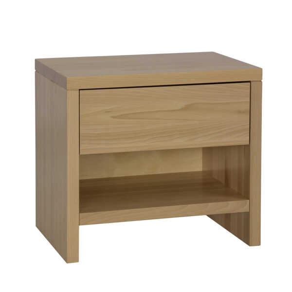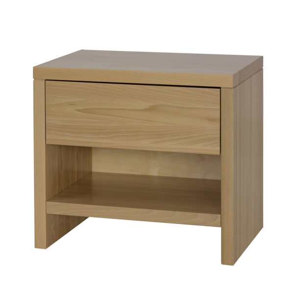 Szafka nocna SN113 z kolekcji Vip, wykonana z litego drewna bukowego, łączy w sobie stylowy wygląd i praktyczne zastosowanie. Jej kompaktowy rozmiar i przemyślany design czynią ją idealnym dodatkiem do każdej sypialni. Wyposażona w praktyczną półkę oraz szufladę zapewniającą przestrzeń do przechowywania niezbędnych przedmiotów, które chcesz mieć pod ręką. Eleganckie, proste linie i brak uchwytów podkreślają jej nowoczesny charakter. Szafka transportowana w całości, nie wymaga montażu.