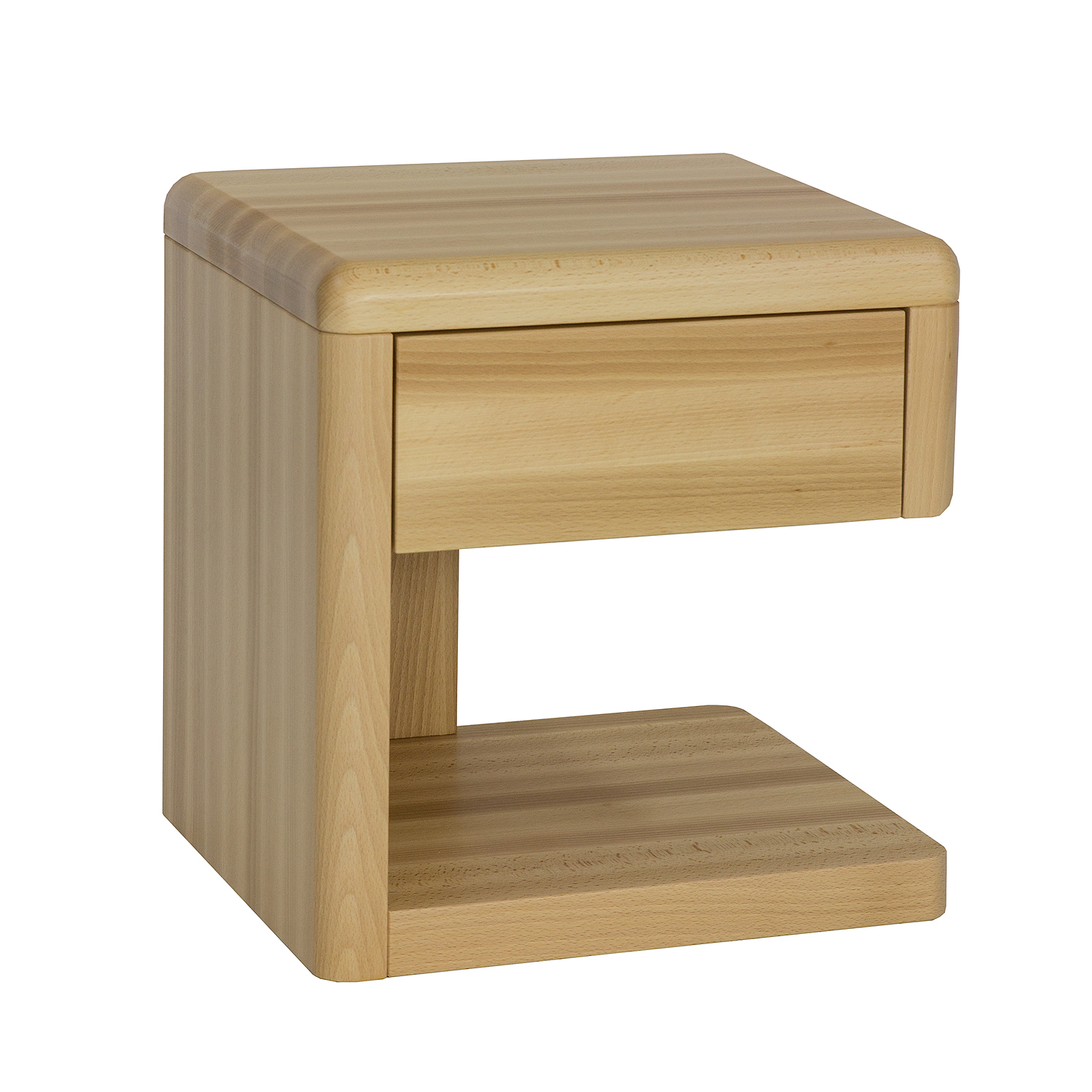 Szafka nocna SN119 wykonana z litego drewna bukowego, łączy w sobie stylowy wygląd i praktyczne zastosowanie. Jej kompaktowy rozmiar i unikatowy design czynią ją idealnym dodatkiem do każdej sypialni. Wyposażona w praktyczną półkę oraz szufladę zapewniającą przestrzeń do przechowywania niezbędnych przedmiotów, które chcesz mieć pod ręką. Delikatnie zaokrąglone krawędzie i brak uchwytów podkreślają jej nowoczesny charakter. Szafka transportowana w całości, nie wymaga montażu.