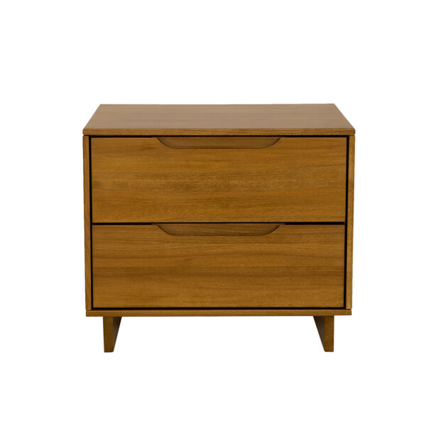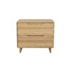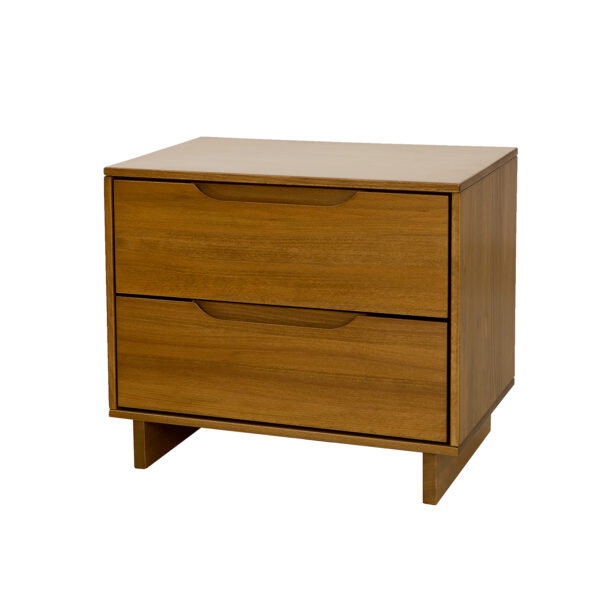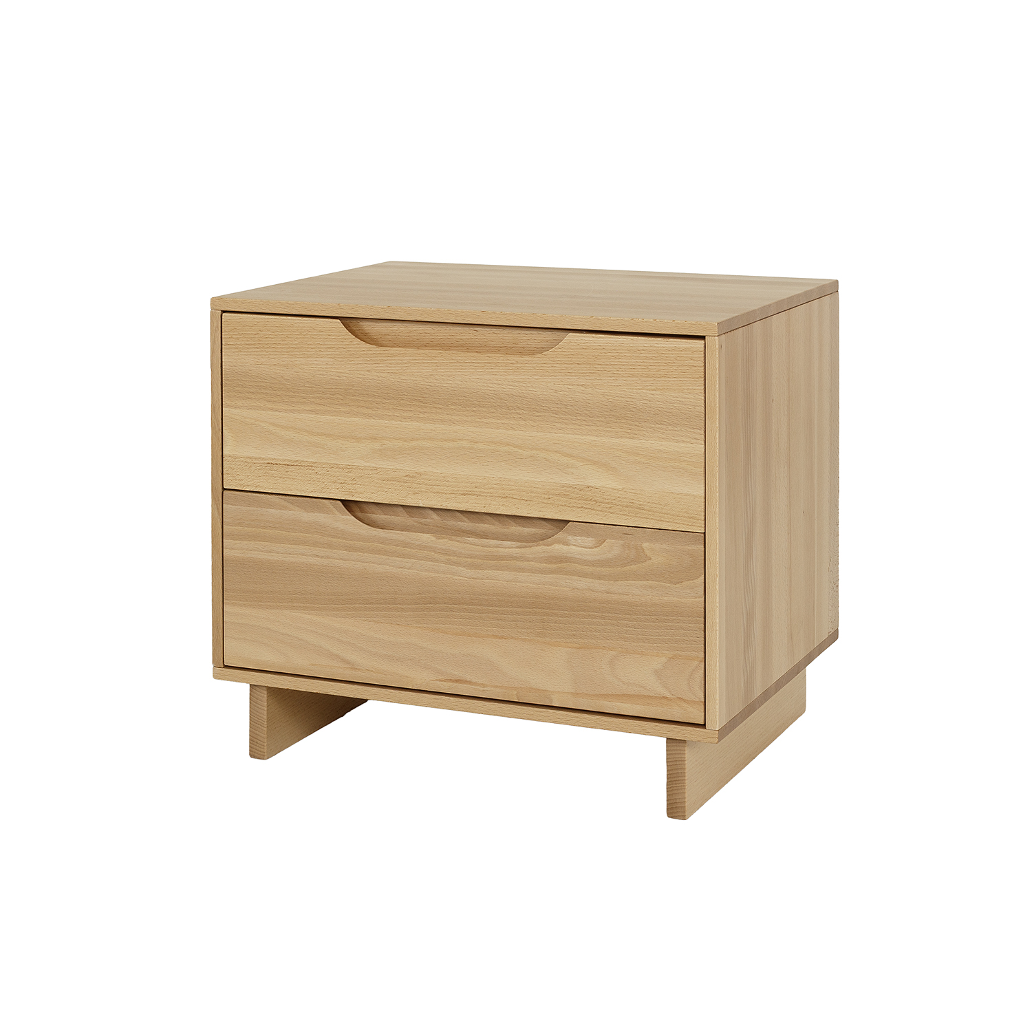 Bukowa szafka nocna SN420 z kolekcji Modern to idealne połączenie funkcjonalności i nowoczesnego designu, które wzbogaci każdą sypialnię. Wykonana z najwyższej jakości litego drewna bukowego, które zapewnia trwałość i elegancki, ponadczasowy wygląd. Wyposażona w dwie pojemne szuflady, zapewnia przestrzeń do przechowywania niezbędnych przedmiotów, takich jak książki, okulary czy inne akcesoria, które chcesz mieć pod ręką. Jej piękne bukowe fronty zdobią dekoracyjne podcięcia, które eliminują potrzebę uchwytów, nadając komodzie minimalistyczny i elegancki wygląd. Drewniane, smukłe nogi nadają szafce nowoczesnego wyglądu, a wnętrzu lekkości i przestronności, oferując praktyczne rozwiązania ułatwiające utrzymanie czystości. Szafka transportowana w całości, nie wymaga montażu.