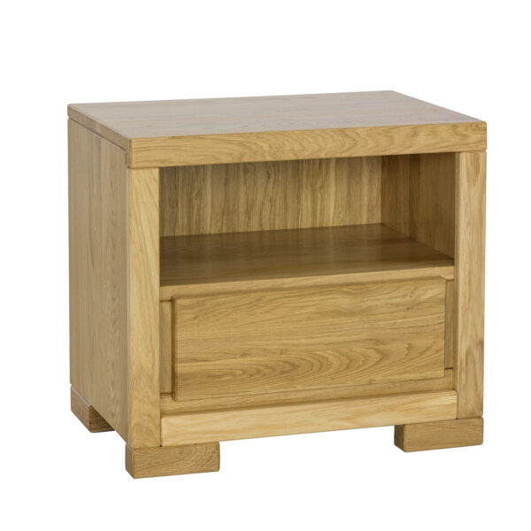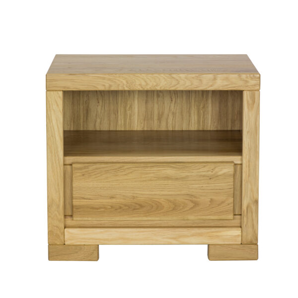 Szafka nocna SN210 z kolekcji Classic charakteryzuje się klasyczną bryłą, która podkreśla naturalne piękno drewna dębowego. Minimalistyczny design sprawia, że mebel jest uniwersalny i łatwo komponują się z różnorodnymi stylami wnętrz, od nowoczesnych po tradycyjne. Wyposażona w praktyczną szufladę oraz półkę zapewniającą przestrzeń do przechowywania niezbędnych przedmiotów, które chcesz mieć pod ręką. Szafka transportowana w całości, nie wymaga montażu.