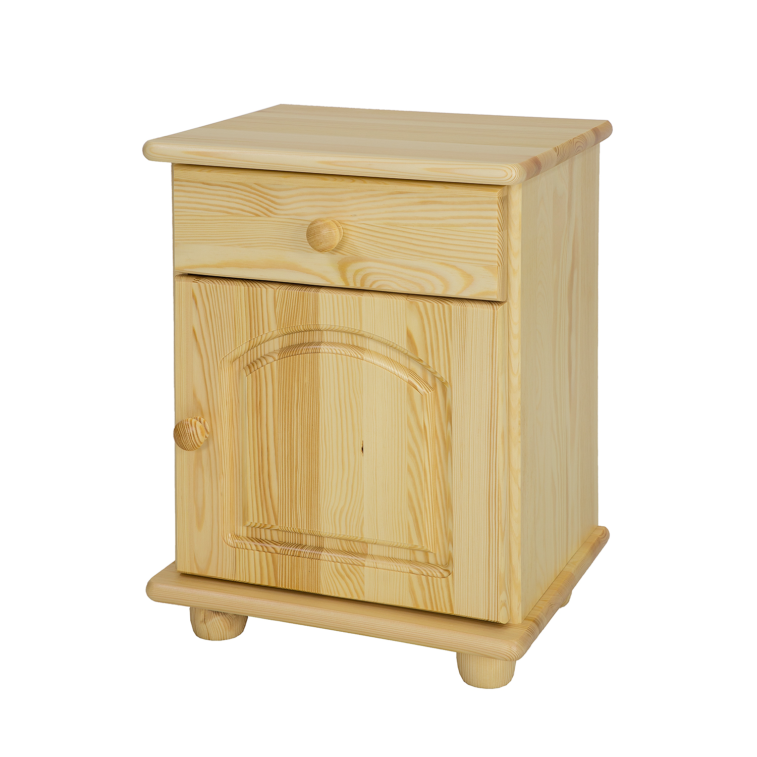 Sosnowa szafka nocna SN104 to praktyczny i estetyczny element wyposażenia każdej sypialni. Wykonana z naturalnego drewna, doskonale wpisuje się w różnorodne style wnętrzarskie, od skandynawskiego po rustykalny. Szafka wyposażona została w szufladę idealną do przechowywania drobnych przedmiotów, takich jak okulary, książki czy ładowarki oraz przestronna zamykaną szafkę oferującą dużo miejsca do przechowywania, co pomaga w utrzymaniu porządku w sypialni. Front szafki zdobią ozdobne frezy, które dodają jej niepowtarzalnego uroku i klasycznego charakteru. Szafka transportowana w paczkach do montażu.