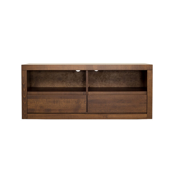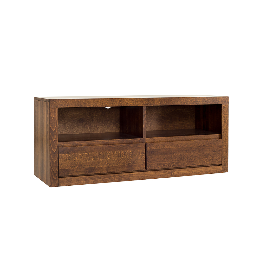 Bukowa szafka RTV RV401 z kolekcji Vip charakteryzuje się klasyczną bryłą, która łączy w sobie elegancję i funkcjonalność. Naturalne usłojenie drewna dodaje jej ciepła i charakteru. Wyposażona w pojemne szuflady zapewniające przestrzeń do przechowywania niezbędnych przedmiotów. Brak uchwytów podkreśla minimalistyczny styl, nadając meblowi nowoczesny charakter. Otwarte półki na sprzęt rtv posiadają otwory przygotowane na kable oraz zapewniają właściwą cyrkulację powietrza. Szafka RTV transportowana w całości, nie wymaga montażu.