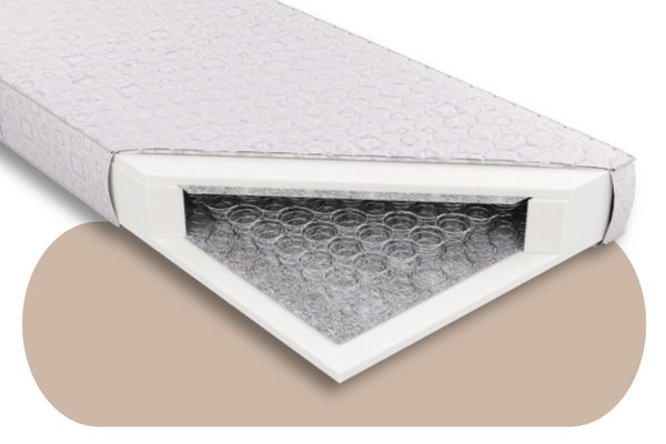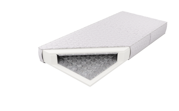 Wkład materaca stanowią sprężyny bonelowe wykonane z wysokogatunkowego drutu. Charakteryzująca się dużą trwałością, wytrzymałością i sprężystością, sprężyny sprzyjają cyrkulacji powietrza. Obustronnie zastosowana została wydłużająca wytrzymałość i zwiększająca twardość podłoża przekładka tapicerska oraz 2,5 cm warstwa pianki trudnozapalnej CMHR 30100. Pokrowiec wykonany jest z materiału trudnozapalnego o składzie 68 % poliester, 32 % polipropylen. Gramatura 168 g/m2. Pokrowiec trudnozapalny zgodnie z angielską normą trudnopalności BS7175 oraz europejską normą UNIEN 597.1+597.2. Pokrowiec występuje w dwóch wariantach kolorystycznych (01 - beżowy oraz 02 – srebrno - biały) oraz w dwóch wariantach pikowania trudnozapalną owatą 60 g/m2 lub 300 g/m2. Ze względu na swoje właściwości w zakresie trudnozapalności materace z tym pokrowcem rekomendowane są do hoteli, pensjonatów i innych tego typu obiektów.