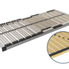 Solidna konstrukcja stelaży ma kluczowe znaczenie podczas użytkowania łóżka. To one odpowiadają za prawidłowe wsparcie dla ciała i zapewniają wentylację materaca. Stelaże do łóżka bez regulacji to standardowa oferta M&K Foam. Listwy gięte wykonane są z drewna bukowego klejonego warstwowo, a rama z drewna brzozowego, klejonego warstwowo. Posiada 42 listwy osadzone w potrójnych elastycznych uchwytach na ramie stelaża, wzmocnionych pasem dla lepszego rozłożenia ciężaru ciała. W części środkowej ma dodatkową regulację twardości. Duża liczba listew amortyzujących zapewnia doskonałe podparcie i dopasowanie do kształtu i ciężaru ciała. Sprzedawany w wersji zmontowanej. Istnieje możliwość zamówienia nietypowego rozmiaru stelaża.