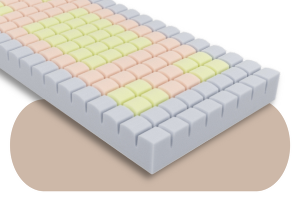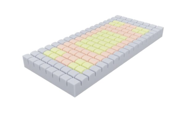 Znajdujący zastosowanie w warunkach szpitalnych ok. 16 cm materac zbudowany jest z: wytrzymałej, nie odkształcającej się, elastycznej pianki poliuretanowej o wewnętrznej strukturze pozwalającej na swobodny przepływ powietrza, z pianki wysokoelastycznej Kaltschaum stanowiącej optymalne podparcie i chroniącej przed nadmierną eksploatacją oraz z pianki wysokoelastycznej Komfort Soft o zwiększonej gęstości. Użyte komponenty pozwoliły uzyskać podłoże optymalnie dopasowujące się do ułożenia ciała oraz kształtu stelaża.