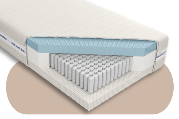 Możliwość wyboru sprężyn jedno- lub siedmiopolowych. Materace ze sprężyną siedmiopolową posiadają 7 zróżnicowanych stref twardości , dzięki nim poszczególne części ciała (głowa, kręgosłup piersiowy, lędwie, miednica, uda, łydki, stopy) utrzymane są we właściwej pozycji zgodnej z ich anatomiczną budową.