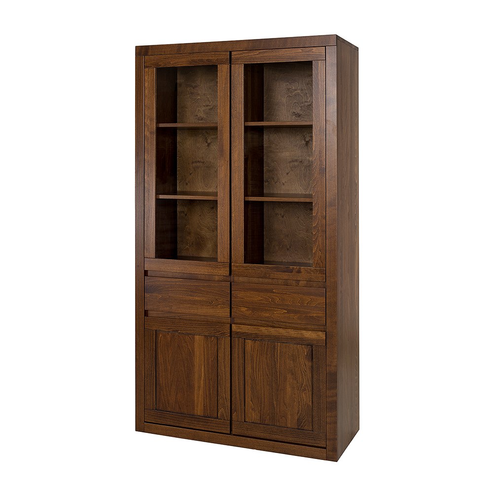 Witryna KW402 z kolekcji Vip wykonana jest z drewna bukowego. Jej klasyczny wygląd bardzo dobrze wpasuje się w tradycyjną i nowoczesną aranżację sypialni, jadalni, salonu czy domowego biura. Na półkach za przeszkloną częścią możesz wyeksponować swoje pamiątki, ozdoby lub piękną zastawę obiadową. Dwie szuflady oraz szafki przydadzą się do przechowywania drobnych przedmiotów, akcesoriów lub dokumentów. Drzwiczki, zdobione prostymi żłobieniami, przyciągają wzrok subtelnością i finezją. Brak uchwytów podkreśla minimalistyczny styl, nadając meblowi nowoczesny charakter. Witryna transportowana w całości, nie wymaga montażu.