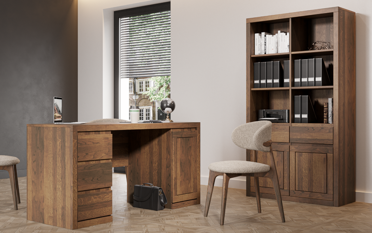 Witryna KW304 z kolekcji Vip wykonana jest z drewna dębowego. Jej klasyczny wygląd bardzo dobrze wpasuje się w tradycyjną i nowoczesną aranżację sypialni, jadalni, salonu czy gabinetu. Na otwartych półkach możesz wyeksponować swoje pamiątki, ozdoby lub książki. Dwie szuflady oraz szafki przydadzą się do przechowywania drobnych przedmiotów, akcesoriów lub dokumentów. Drzwiczki, zdobione prostymi żłobieniami, przyciągają wzrok subtelnością i finezją. Brak uchwytów podkreśla minimalistyczny styl, nadając meblowi nowoczesny charakter. Witryna transportowana w całości, nie wymaga montażu.