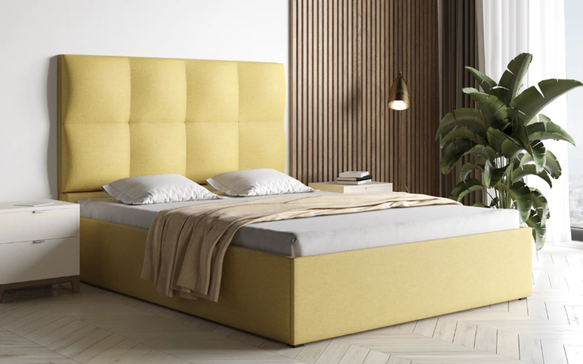 Zagłówek, który można łatwo zdjąć i wymienić na inny model? Seria elementów tapicerowanych do łóżek Replace&Reuse to nowoczesne spojrzenie na sypialnię modułową, gdzie każdy element wystroju można spersonalizować i dopasować do swoich potrzeb. Zagłówek na zdjęciu to model o prostej i eleganckiej konstrukcji. Dzięki modnym przeszyciom, całość wygląda jakby składała się z czterech mniejszych elementów. Taki wygląd zagłówka pozwoli wprowadzić do sypialni tak bardzo potrzebne uczucie spokoju i relaksu. Jeśli po kilku miesiącach postanowisz zmienić wygląd sypialni czy odświeżyć swoje łóżko, to ten zagłówek można wygodnie zdjąć i wymienić na inny model. Ogromną zaletą łóżek tapicerowanych jest właśnie to, że jest mnóstwo elementów do wyboru, co daje duże możliwości dekoracyjne i aranżacyjne. Zagłówek składa się z elementów tapicerowanych na rzepach. Zagłówek ma wysokość około 130 cm i grubość około 12 cm.