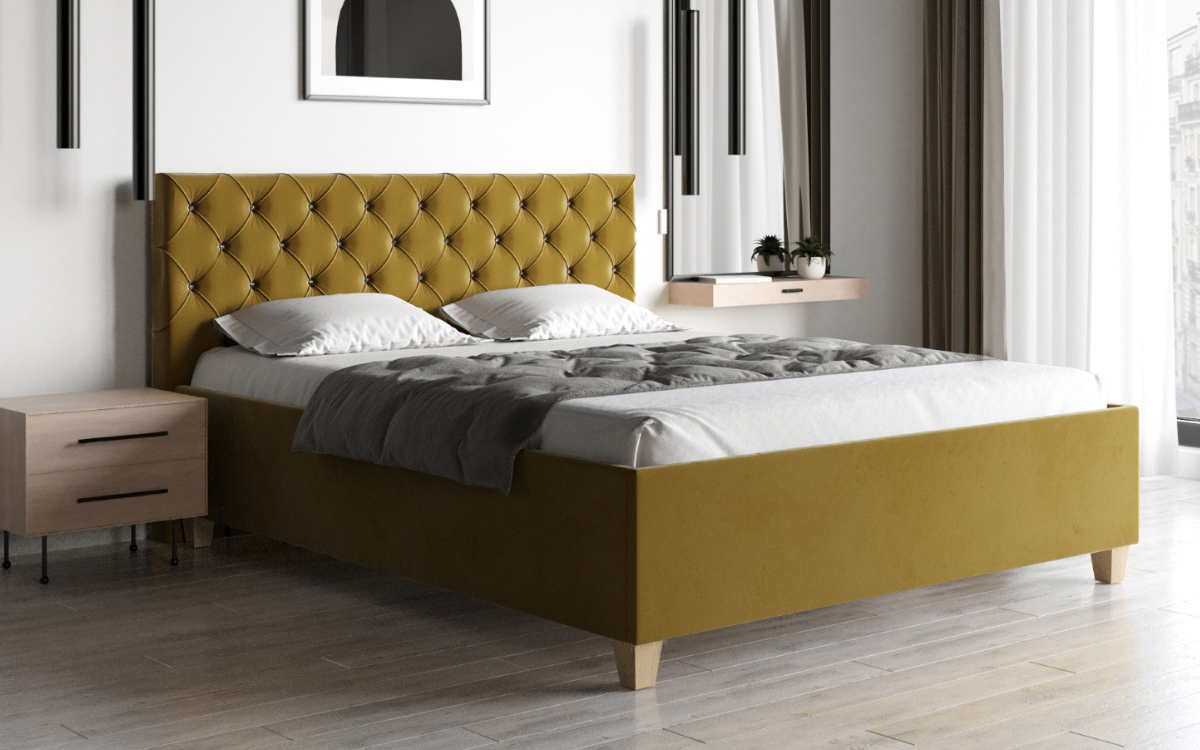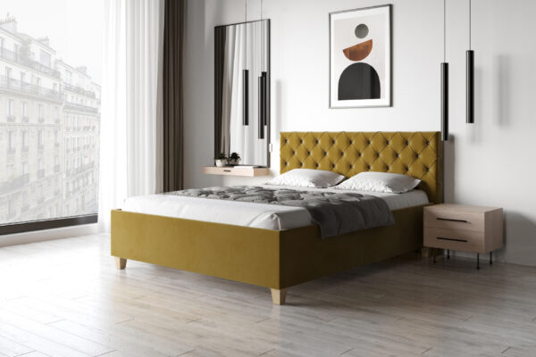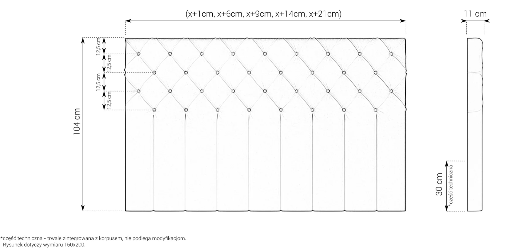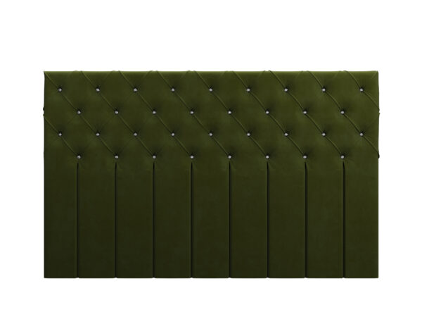 Elegancki, głęboko pikowany zagłówek współgra z każdym korpusem z serii Multisystem i otwiera nieograniczone możliwości stworzenia własnego projektu łóżka. Bogactwo tkanin pozwala zaaranżować sypialnię według indywidualnych upodobań i profesjonalnie połączyć wezgłowie z korpusem. Wykonany z płyty oraz pianki z efektywnymi skośnymi zakładkami, obity tkaniną meblową. Zagłówek ma wysokość około 104 cm i grubość około 11 cm. Jest gęsto zdobiony dekoracyjnymi guzikami, które można zastąpić kryształami Swarovski. Za dopłatą istnieje możliwość zamówienia zagłówka o wysokości lub szerokości innej niż standardowa oraz otapicerowania go w tylnej części.
