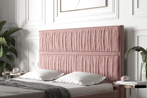 Finezyjny, marszczony zagłówek tworzy kompozycję idealną do wnętrz zarówno nowoczesnych, jak i klasycznych. Pasuje do każdego korpusu z serii Multisystem i otwiera nieograniczone możliwości stworzenia własnego projektu łóżka. Bogactwo tkanin pozwala zaaranżować sypialnię według indywidualnych upodobań i profesjonalnie połączyć wezgłowie z korpusem. Konstrukcja wykonana z płyty oklejonej pianką i owatą, a wszystko obite tkaniną meblową. Zagłówek ma wysokość około 121 cm i grubość około 8 cm. Występuje w kilku wariantach standardowych szerokości. Za dopłatą istnieje możliwość zamówienia zagłówka o wysokości lub szerokości innej niż standardowa oraz otapicerowania go w tylnej części.