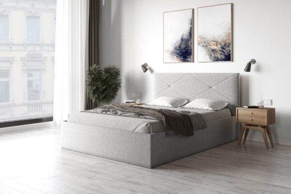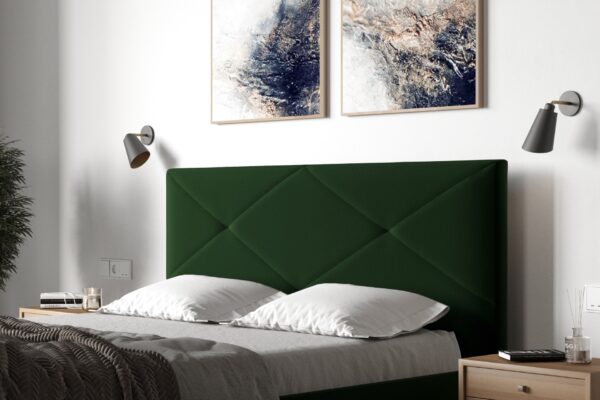 Oryginalny zagłówek, przeszycia skośne tworzące ciekawą kompozycję. Idealnie komponuje się z każdym korpusem serii Multisystem i otwiera nieograniczone możliwości stworzenia własnego projektu łóżka. Bogactwo tkanin pozwala zaaranżować sypialnię według indywidualnych upodobań i profesjonalnie połączyć wezgłowie z korpusem. Konstrukcja wykonana z płyty obitej owatą i tkaniną. Zagłówek ma wysokość około 105 cm i grubość około 11 cm. Za dopłatą istnieje możliwość zamówienia zagłówka o wysokości lub szerokości innej niż standardowa oraz otapicerowania go w tylnej części.