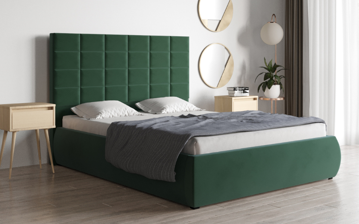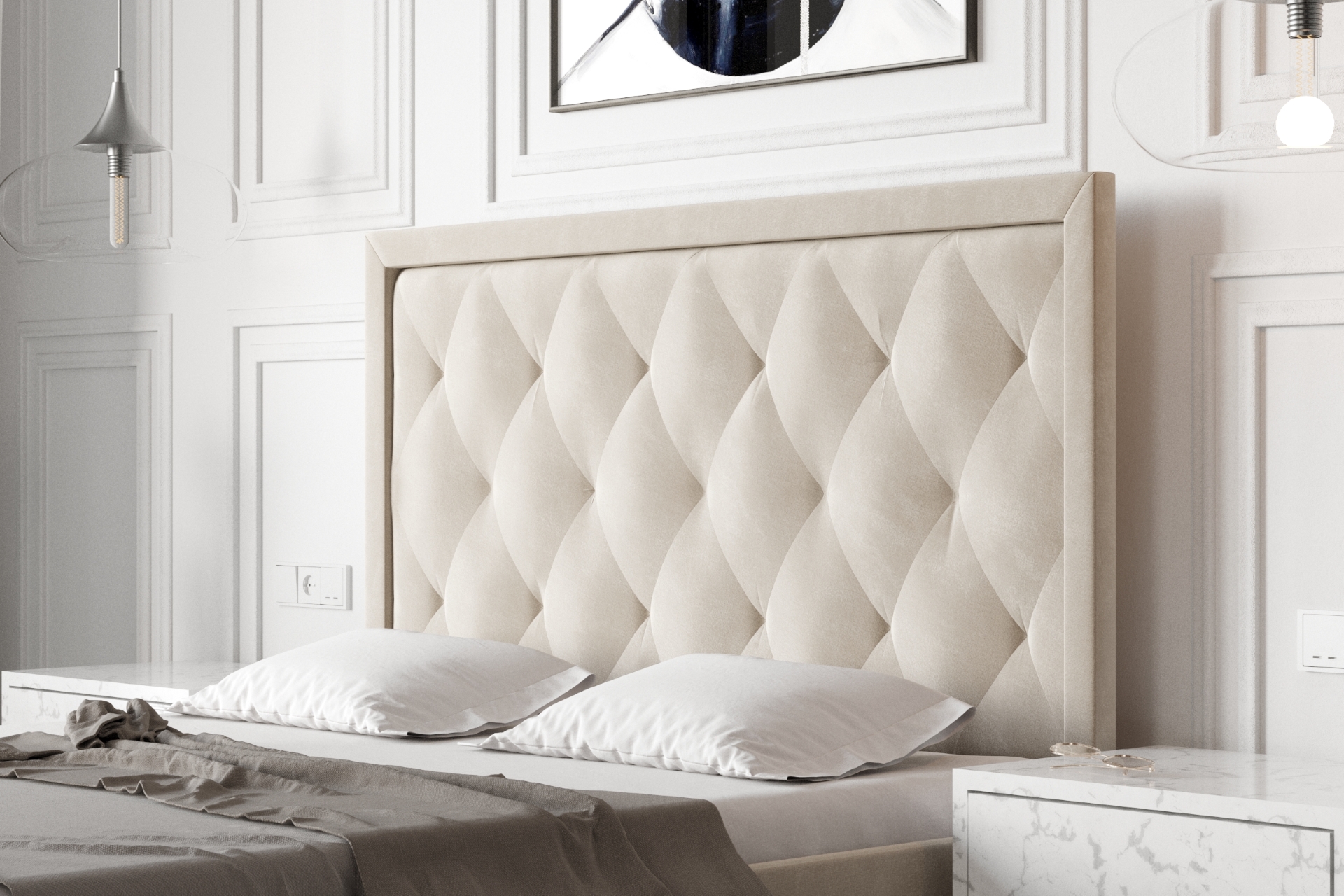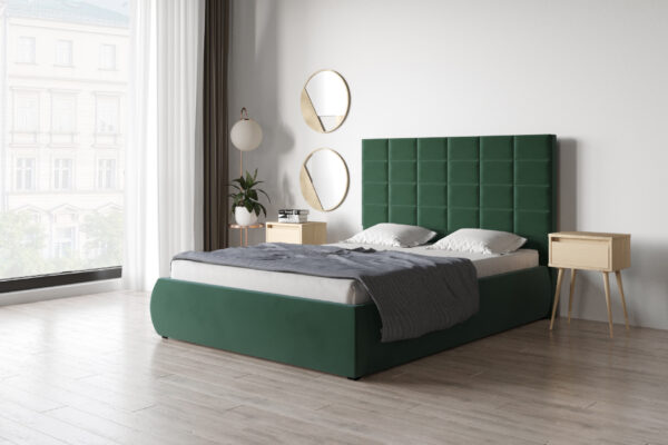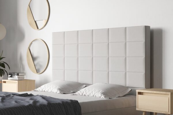 Geometryczny, składający się z prostokątnych, oddzielnie tapicerowanych elementów gęsto przeszywany zagłówek. Idealnie komponuje się z każdym korpusem serii Multisystem i otwiera nieograniczone możliwości stworzenia własnego projektu łóżka. Bogactwo tkanin pozwala zaaranżować sypialnię według indywidualnych upodobań i profesjonalnie połączyć wezgłowie z korpusem. Wykonany jest z płyty obitej pianką, owatą i tkaniną meblową. Zagłówek ma wysokość około 124 cm i grubość około 9 cm. Za dopłatą istnieje możliwość zamówienia zagłówka o wysokości lub szerokości innej niż standardowa oraz otapicerowania go w tylnej części.