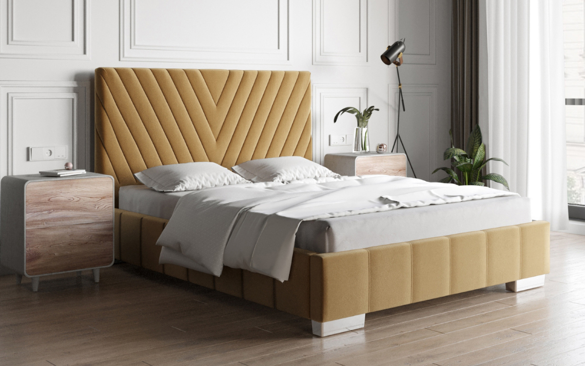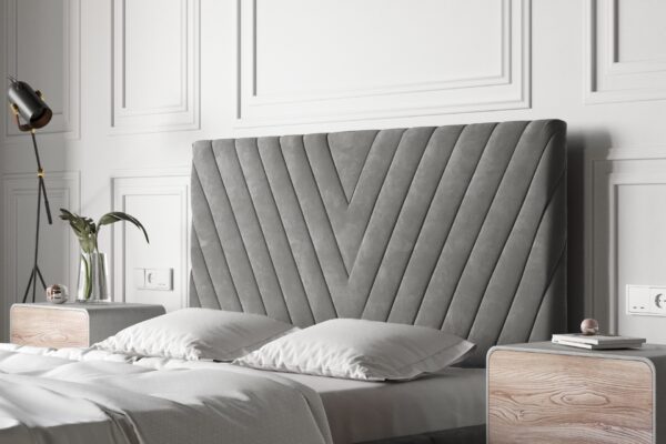 Nowoczesny, przeszywany promieniście zagłówek. Idealnie komponuje się z każdym korpusem serii Multisystem i otwiera nieograniczone możliwości stworzenia własnego projektu łóżka. Bogactwo tkanin pozwala zaaranżować sypialnię według indywidualnych upodobań i profesjonalnie połączyć wezgłowie z korpusem. Wykonany jest z płyty obitej pianką, owatą i tkaniną meblową. Zagłówek ma wysokość około 125 cm i grubość około 8 cm. Za dopłatą istnieje możliwość zamówienia zagłówka o wysokości lub szerokości innej niż standardowa oraz otapicerowania go w tylnej części.