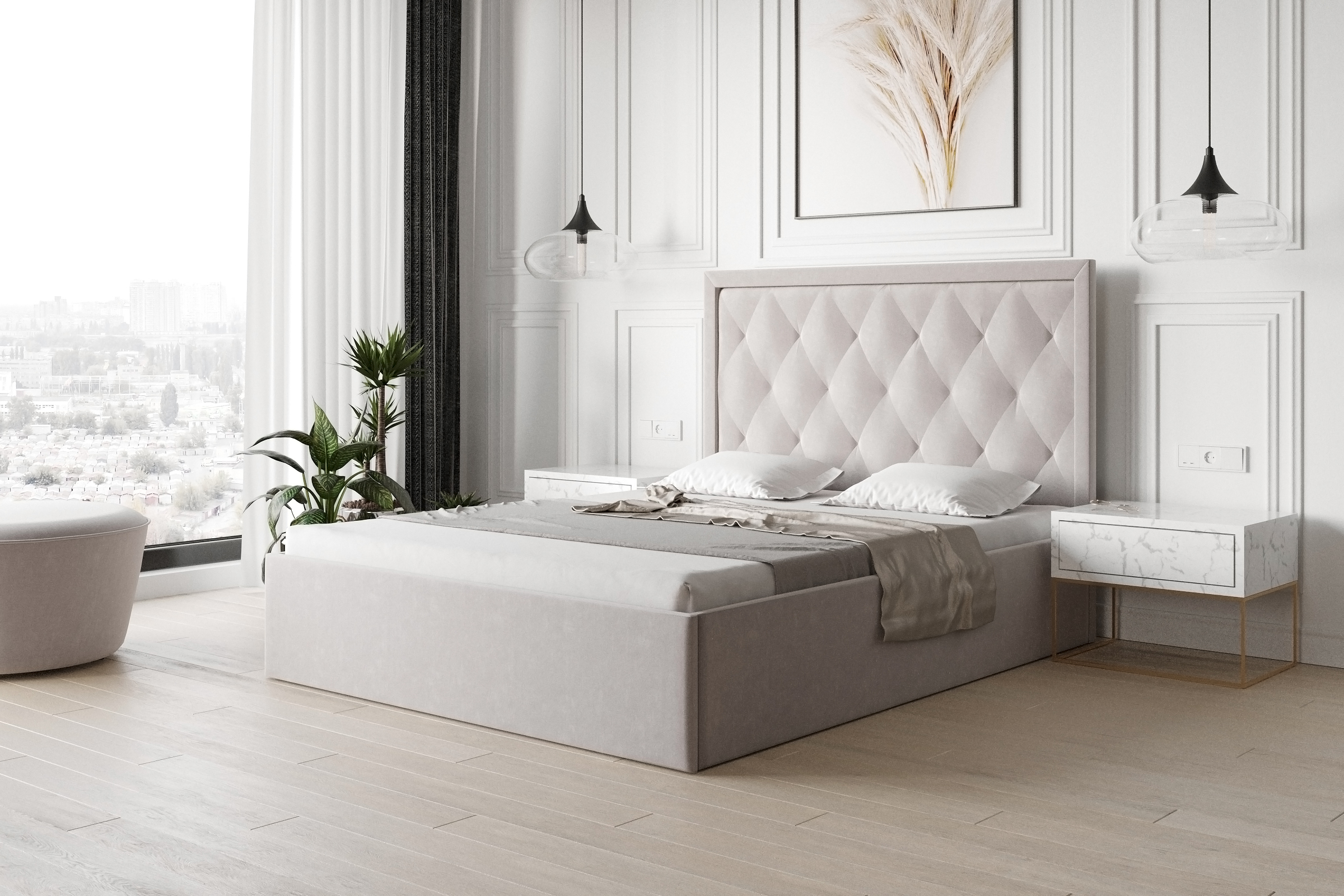 Elegancki, zdobiony poprzecznymi, pikowanymi przeszyciami zagłówek. Idealnie komponuje się z każdym korpusem serii Multisystem i otwiera nieograniczone możliwości stworzenia własnego projektu łóżka. Bogactwo tkanin pozwala zaaranżować sypialnię według indywidualnych upodobań i profesjonalnie połączyć wezgłowie z korpusem. Konstrukcja wykonana z płyty oklejonej pianką i owatą, ozdobionej ramką a wszystko obite tkaniną meblową. Zagłówek ma wysokość około 121 cm i grubość około 6 cm. Za dopłatą istnieje możliwość zamówienia zagłówka o wysokości lub szerokości innej niż standardowa oraz otapicerowania go w tylnej części.
