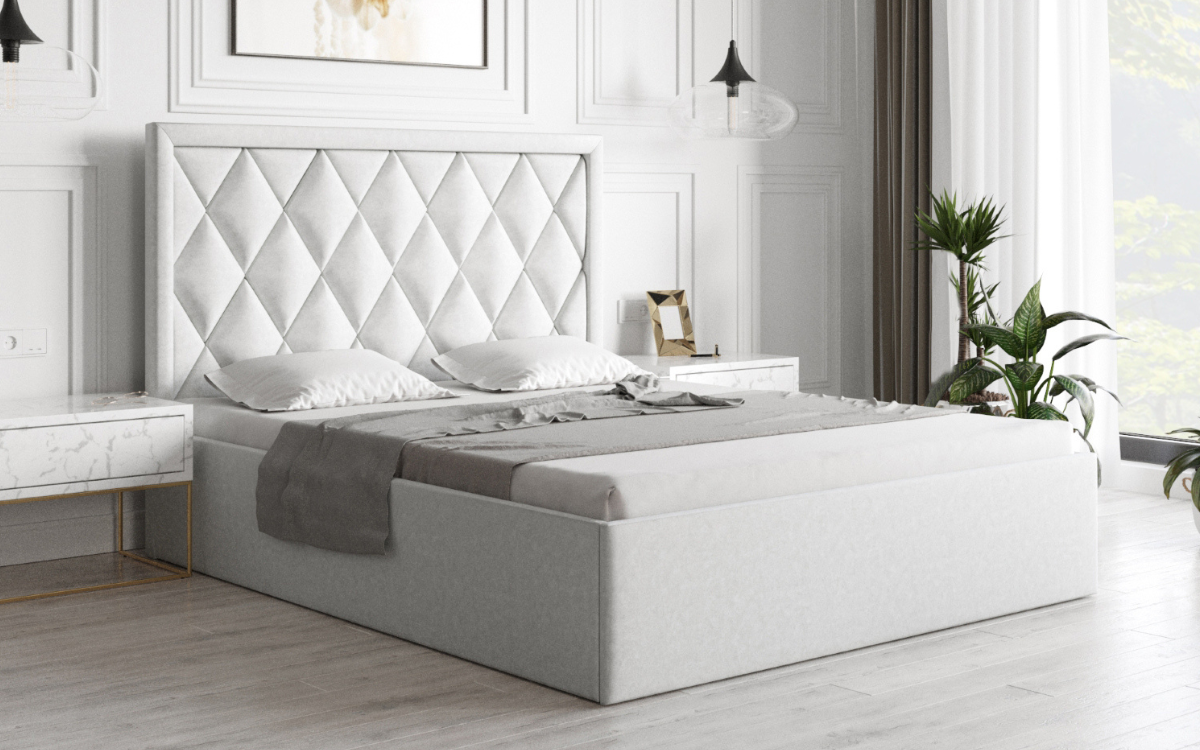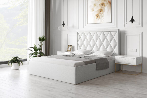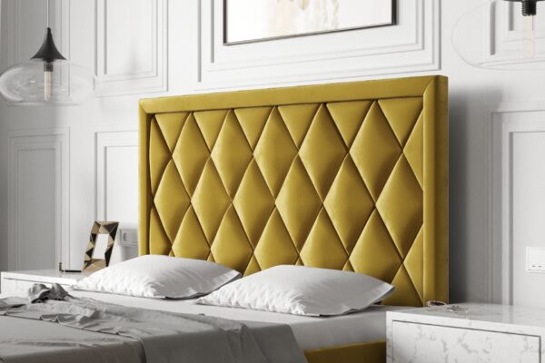 Elegancki, zdobiony panelami w kształcie rombów zagłówek. Idealnie komponuje z każdym korpusem z serii Multisystem i otwiera nieograniczone możliwości stworzenia własnego projektu łóżka. Bogactwo tkanin pozwala zaaranżować sypialnię według indywidualnych upodobań i profesjonalnie połączyć wezgłowie z korpusem. Konstrukcja wykonana z płyty oklejonej pianką i owatą, ozdobionej ramką a wszystko obite tkaniną meblową. Zagłówek ma wysokość około 121 cm i grubość około 6 cm. Występuje w kilku wariantach standardowych szerokości. Za dopłatą istnieje możliwość zamówienia zagłówka o wysokości lub szerokości innej niż standardowa oraz otapicerowania go w tylnej części.