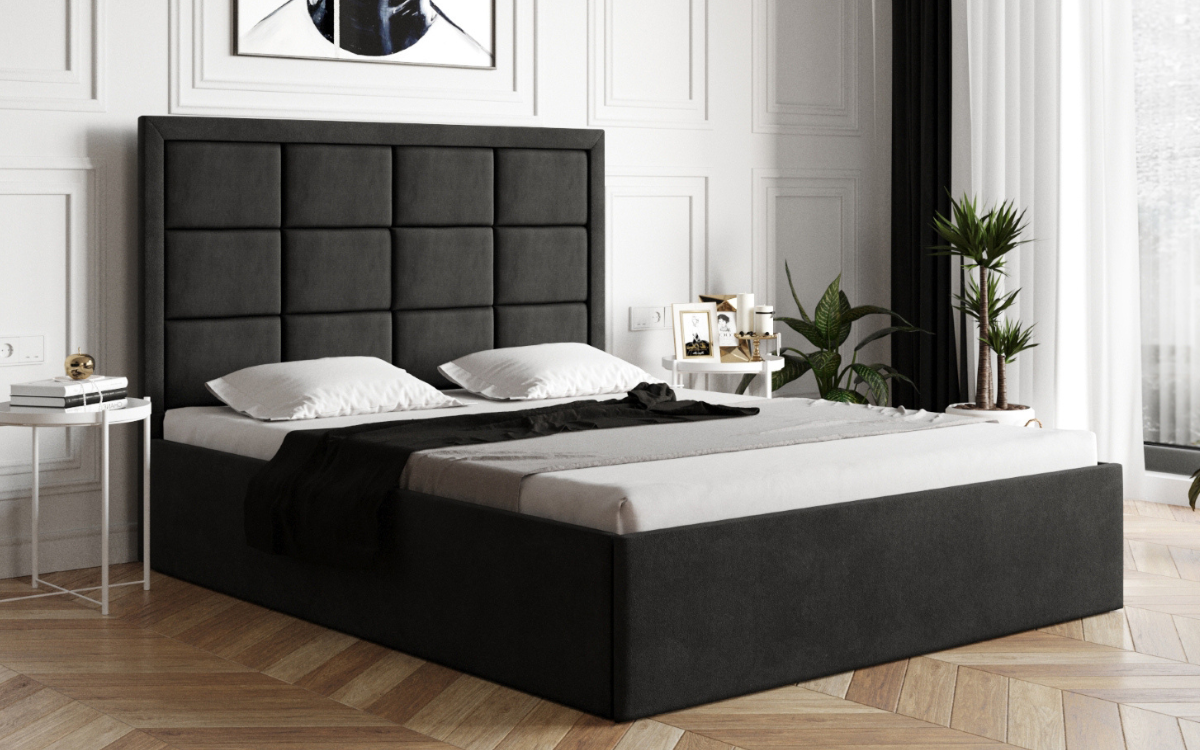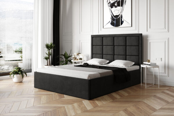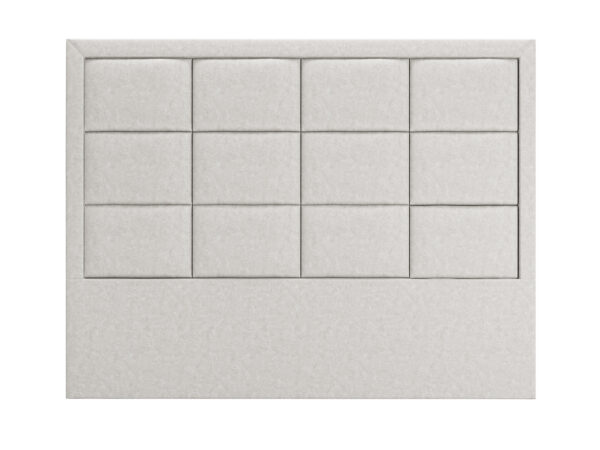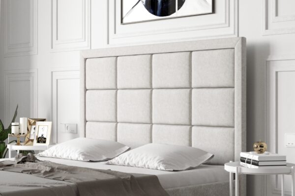 Elegancki, zdobiony panelami w kształcie prostokątów zagłówek. Idealnie komponuje z każdym korpusem z serii Multisystem i otwiera nieograniczone możliwości stworzenia własnego projektu łóżka. Bogactwo tkanin pozwala zaaranżować sypialnię według indywidualnych upodobań i profesjonalnie połączyć wezgłowie z korpusem. Konstrukcja wykonana z płyty oklejonej pianką i owatą, ozdobionej ramką a wszystko obite tkaniną meblową. Zagłówek ma wysokość około 121 cm i grubość około 6 cm. Występuje w kilku wariantach standardowych szerokości. Za dopłatą istnieje możliwość zamówienia zagłówka o wysokości lub szerokości innej niż standardowa oraz otapicerowania go w tylnej części.