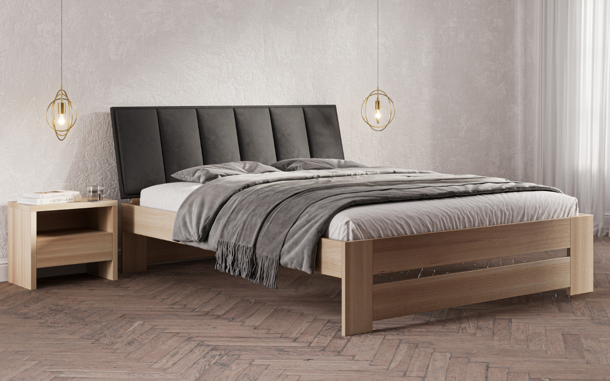 Zagłówek tapicerowany ZG001 stanowi doskonałe uzupełnienie dla łóżek LK187 i LK187 BOX. Dodaje im nie tylko elegancji, ale także komfortu podczas czytania lub oglądania telewizji w łóżku. Szeroki wybór tkanin obiciowych, pozwala na personalizację i dopasowanie łóżka do indywidualnego stylu i wystroju wnętrza, podkreślając naturalne piękno drewna bukowego.