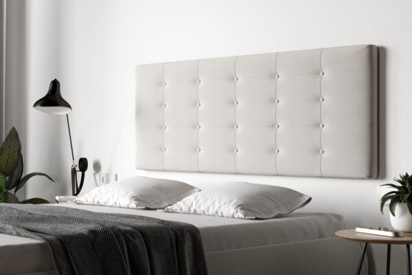 Delikatnie zdobiony przeszyciami pionowymi i poziomymi oraz guzikami, niski zagłówek panelowy o wysokości ok. 60 cm i grubości ok. 7 cm. Idealnie komponuje się z korpusami z serii Multisystem. Wykonany z płyty obitej pianką i tkaniną meblową dostępną w szerokiej gamie kolorystycznej. Przeznaczony do powieszenia na ścianie. Jest wyposażony w system montażowy. Klient decyduje o szerokości panelu, rozmiary inne niż standardowe są dostępne na zamówienie. Panel sprzyja wygodzie i dodaje elegancji każdej sypialni.