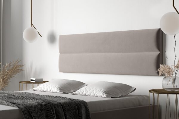 Zagłówek panelowy niski delikatnie ozdobiony jednym przeszyciem poziomym, tworzącym dwie długie poduszki, o wysokości ok. 60 cm i grubości ok. 8 cm. Idealnie komponuje się z korpusami z serii Multisystem. Wykonany z płyty obitej pianką i tkaniną meblową dostępną w szerokiej gamie kolorystycznej. Przeznaczony do powieszenia na ścianie. Jest wyposażony w system montażowy. Klient decyduje o szerokości panelu, rozmiary inne niż standardowe są dostępne na zamówienie. Panel sprzyja wygodzie i dodaje elegancji każdej sypialni.