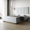 Zagłówek panelowy średni, lekko wypukły, zdobiony pionowymi i poziomymi przeszyciami, o wysokości ok. 90 cm i grubości ok. 8 cm. Idealnie komponuje się z korpusami z serii Multisystem. Wykonany z płyty obitej owatą i tkaniną meblową dostępną w szerokiej gamie kolorystycznej. Przeznaczony do powieszenia na ścianie. Jest wyposażony w system montażowy. Klient decyduje o szerokości panelu, rozmiary inne niż standardowe są dostępne na zamówienie. Panel sprzyja wygodzie i dodaje elegancji każdej sypialni.