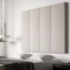 Zagłówek panelowy wysoki, lekko wypukły, zdobiony pionowymi przeszyciami, o wysokości ok. 120 cm i grubości ok. 7 cm. Idealnie komponuje się z korpusami z serii Multisystem. Wykonany z płyty obitej owatą i tkaniną meblową dostępną w szerokiej gamie kolorystycznej. Przeznaczony do powieszenia na ścianie. Jest wyposażony w system montażowy. Klient decyduje o szerokości panelu, rozmiary inne niż standardowe są dostępne na zamówienie. Panel sprzyja wygodzie i dodaje elegancji każdej sypialni.