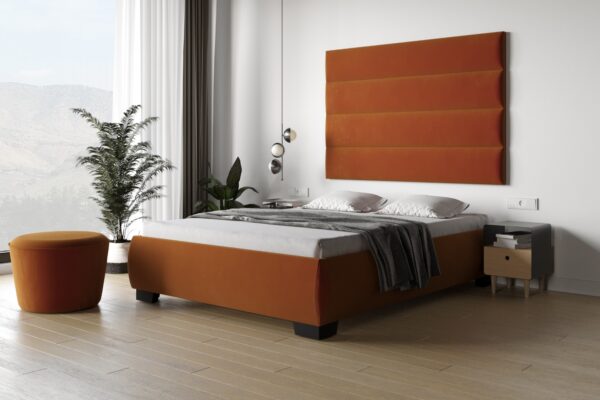 Delikatnie ozdobiony jednym przeszyciem poziomym, tworzącym cztery długie poduszki, zagłówek panelowy, o wysokości ok. 120 cm i grubości ok. 8 cm. Idealnie komponuje się z korpusami z serii Multisystem. Wykonany z płyty obitej pianką i tkaniną meblową dostępną w szerokiej gamie kolorystycznej. Przeznaczony do powieszenia na ścianie. Jest wyposażony w system montażowy. Klient decyduje o szerokości panelu, rozmiary inne niż standardowe są dostępne na zamówienie. Panel sprzyja wygodzie i dodaje elegancji każdej sypialni.