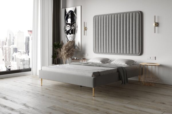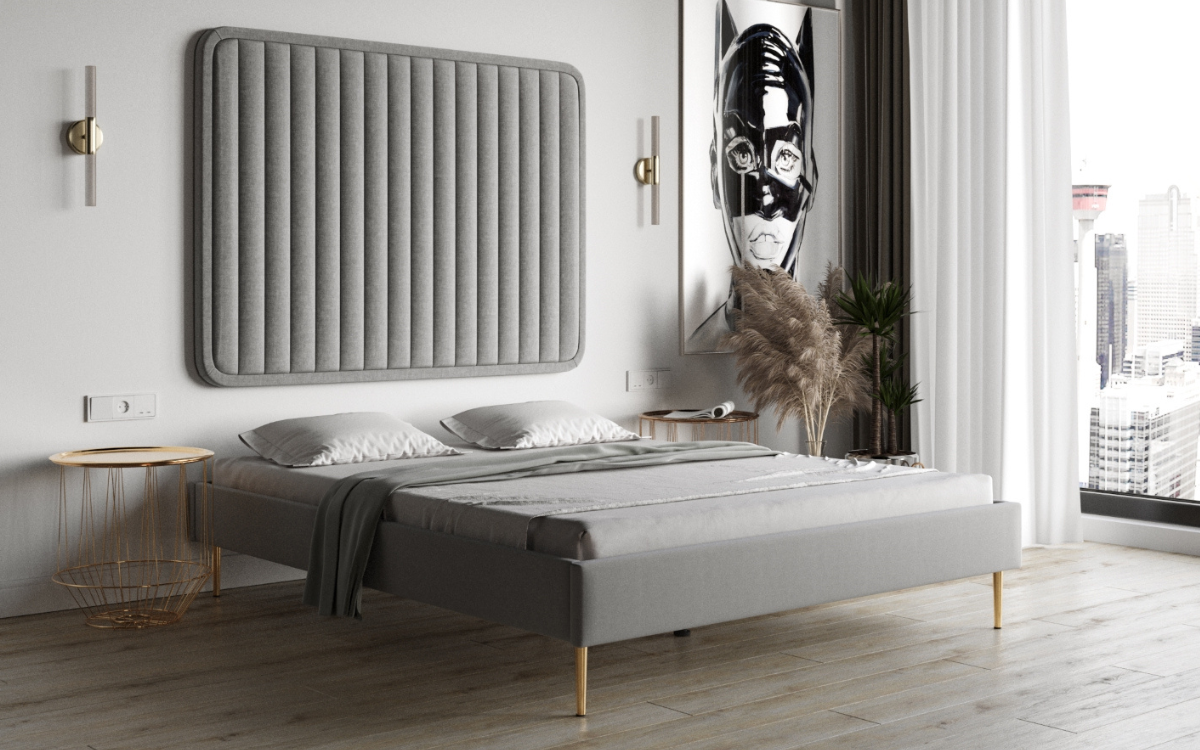 Zagłówek widoczny na zdjęciu to nowocześnie zaprojektowany, wysoki na 120 cm panel tapicerowany pasujący do łóżek obitych tkaniną. Jest to bez wątpienia ciekawa alternatywa dla tradycyjnego zagłówka, który jest połączony z ramą łóżka. Tutaj mamy nowoczesne spojrzenie na modną sypialnię, bo panel został zawieszony za pomocą wygodnych dedykowanych uchwytów na ścianie i sprawia wrażenie, jakby delikatnie unosił się nad łóżkiem. Ten panel to element tapicerowany, który można zamówić praktycznie w dowolnym odcieniu kolorystycznym i tkaninie. Dzięki temu każdy może urządzić sypialnię po swojemu i nadać jej indywidualny charakter. Ten konkretny model najlepiej będzie się prezentować w przestronnej sypialni z wysokim sufitem. Jest to wyższy panel, co w połączeniu z wysokim sufitem będzie stanowić idealnie harmonijną całość. Tapicerowany panel może wprowadzić do wnętrza nieco przytulności i spokoju. Powieś go na ścianie nad łóżkiem i ciesz się piękną sypialnią każdego dnia i każdej nocy.